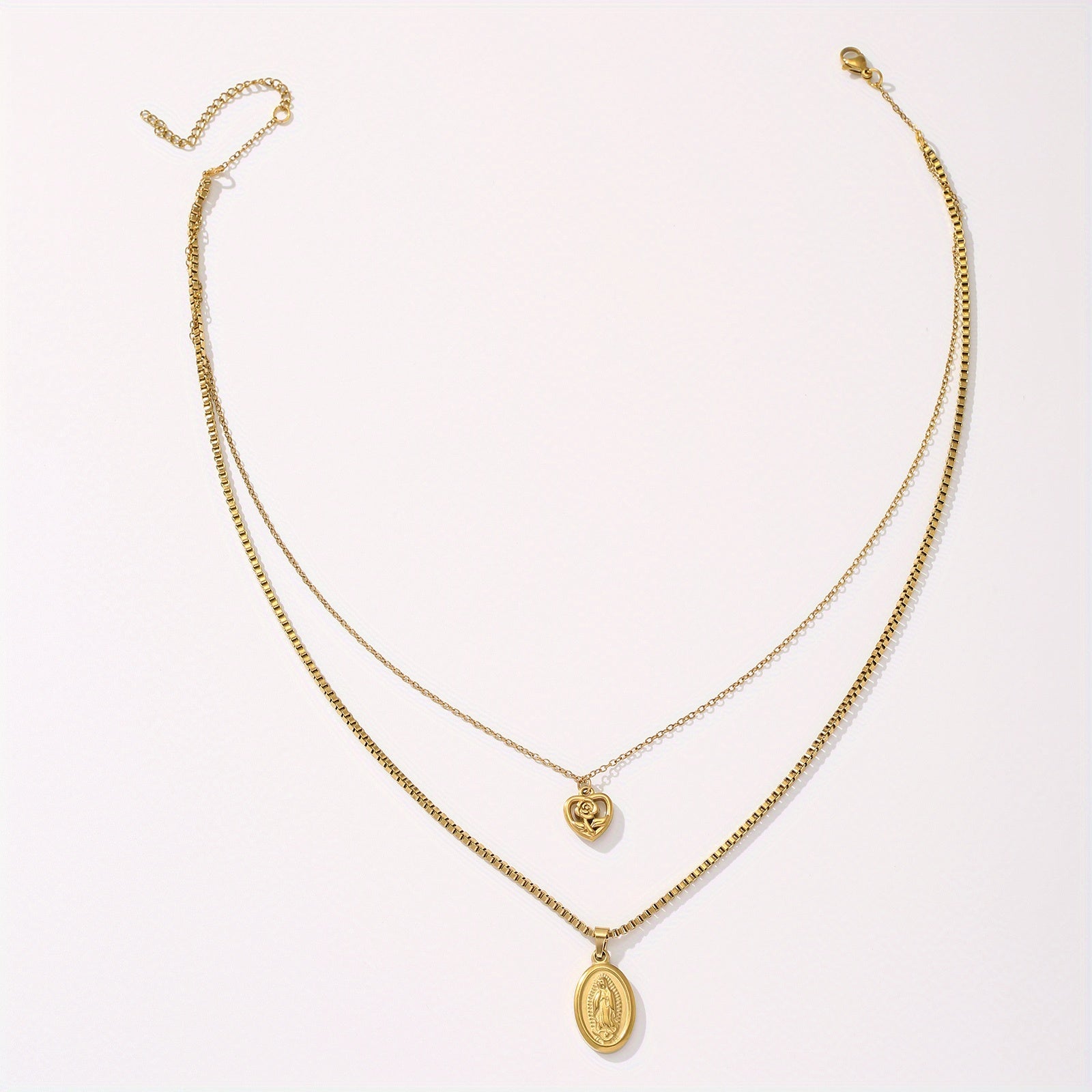 Colar Nossa Senhora de Fátima Folheado a Ouro 18K com Pingente de Coração e Rosa