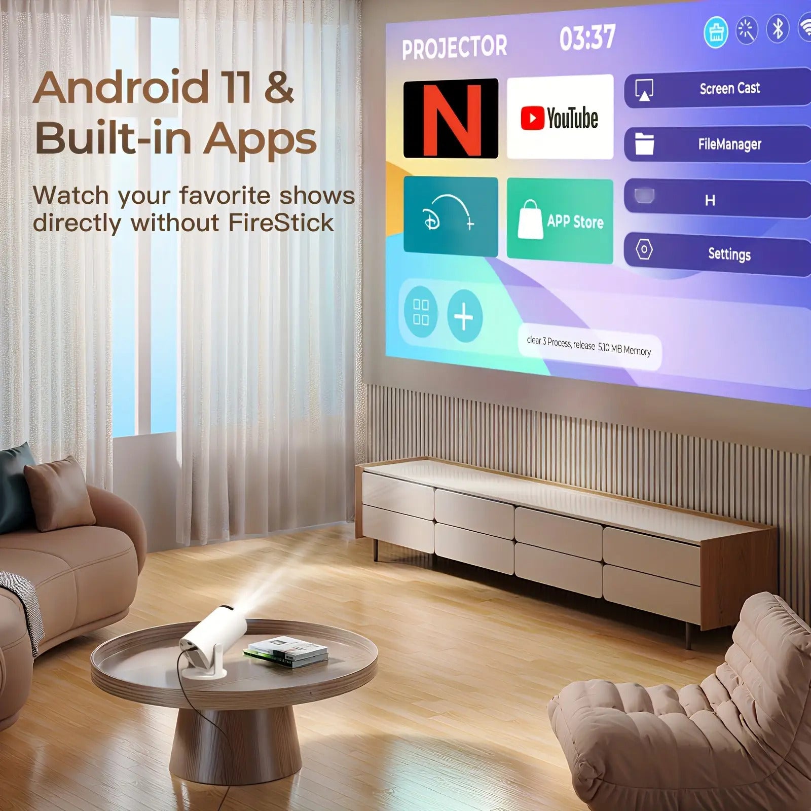 Transforme qualquer lugar num cinema com o Mini Projetor HY300PRO 2025! Com WiFi, Bluetooth, 720P nativo, suporte a 4K e Android 11 integrado, você assiste tudo sem precisar de dispositivos extras. O design com rotação de 180° e correção automática garante instalação rápida e prática. Ideal para filmes, festas, jogos e uso indoor ou outdoor.